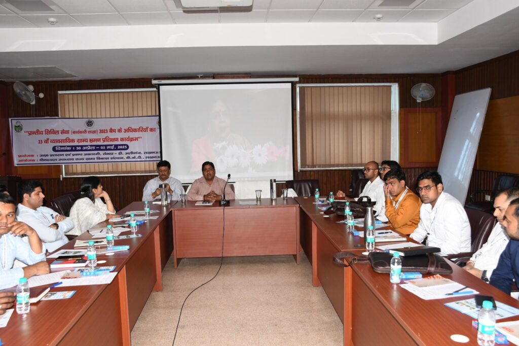 लखनऊ : दीनदयाल उपाध्याय राज्य ग्राम्य विकास संस्थान, बी.के.टी., लखनऊ द्वारा 30 अप्रैल से 2 मई 2025 तक भारतीय प्रशासनिक सेवा तथा प्रान्तीय प्रशासनिक सेवा, उत्तर प्रदेश के प्रोबेशनर्स अधिकारियों हेतु तीन दिवसीय अध्ययन भ्रमण विषयक प्रशिक्षण कार्यक्रम का आयोजन किया गया। यह कार्यक्रम संस्थान के महानिदेशक श्री एल. वेंकटेश्वर लू के संरक्षण तथा अपर निदेशक श्री बी.डी. चौधरी के मार्गदर्शन में संचालित हुआ।